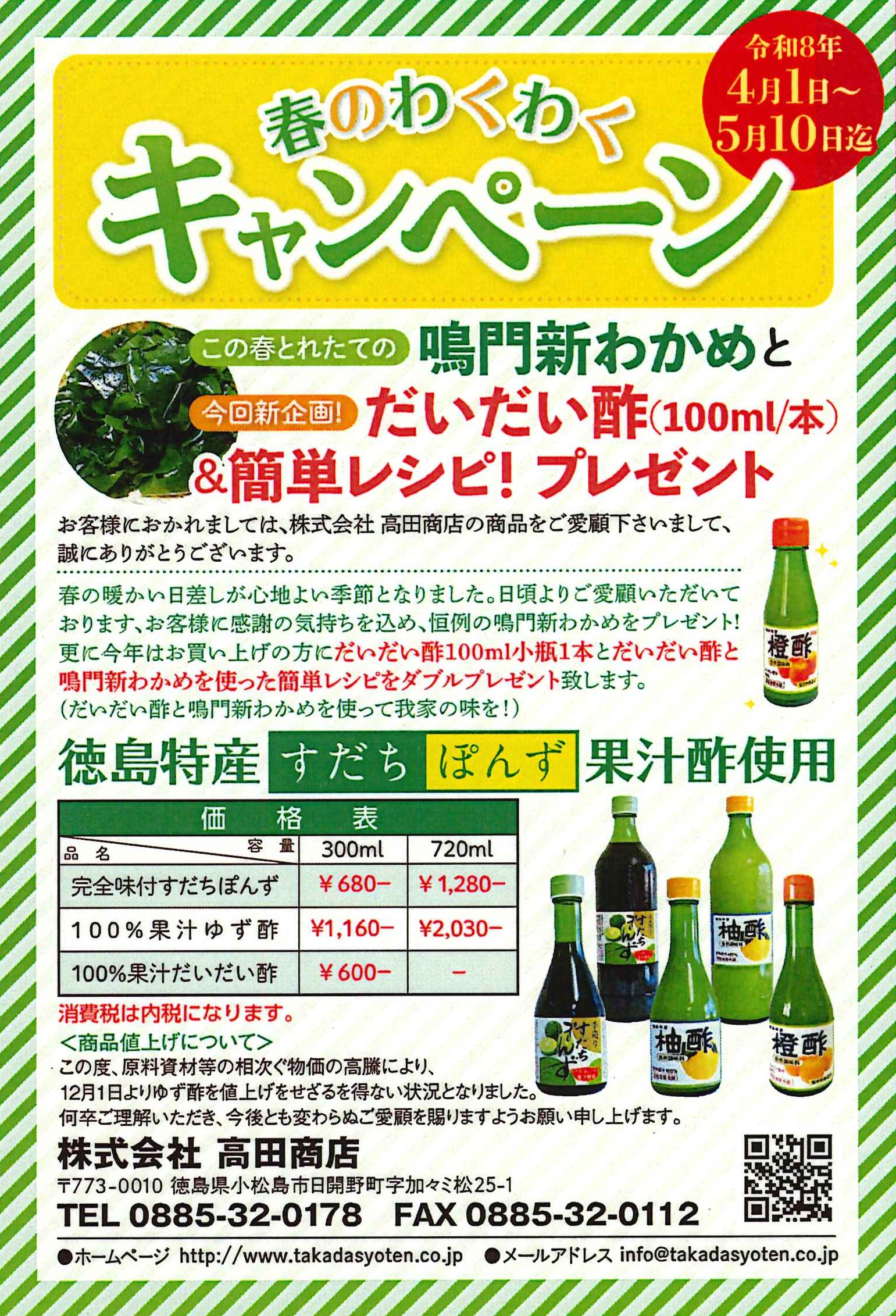 2025年03月31日 すだちぽんず、ゆずポン酢値上のご案内について